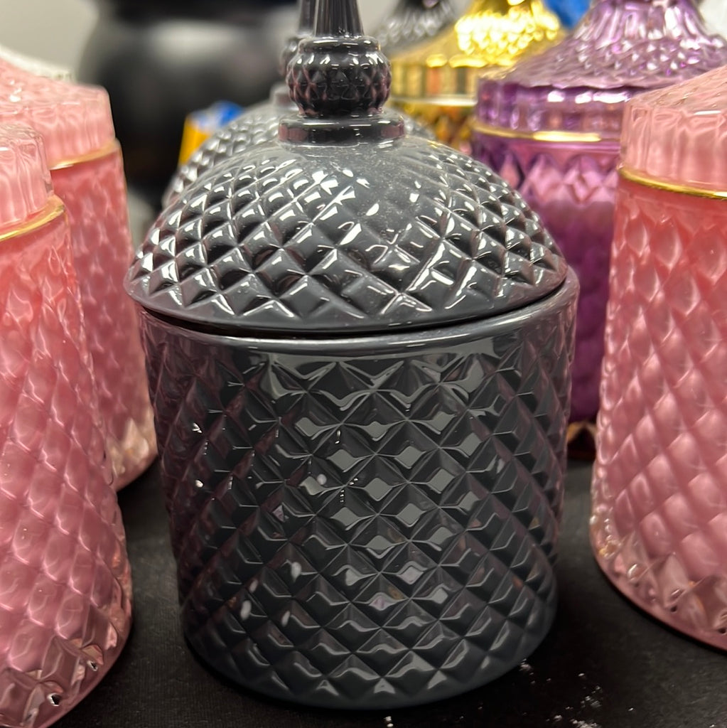 100% Soy Wax candle with real dried floral and a crystal. plus WOOD WICK.