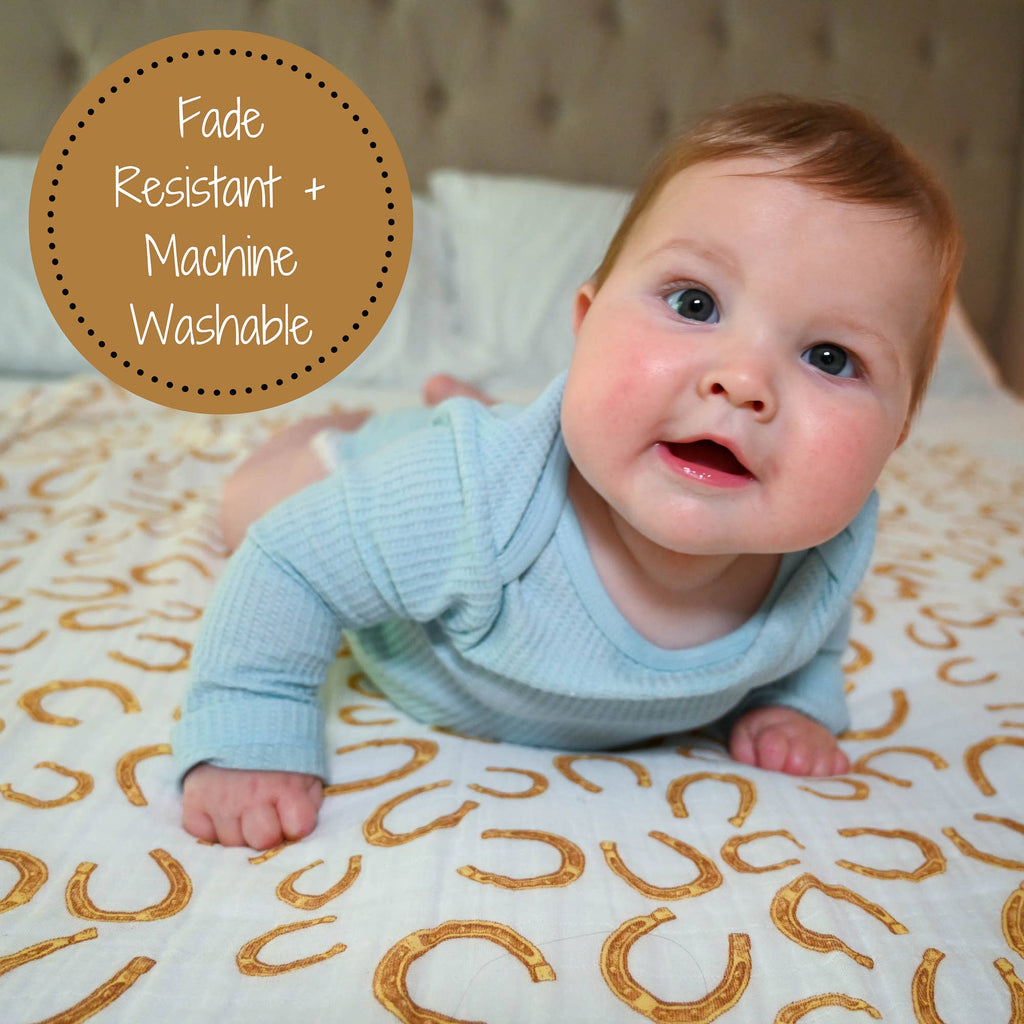 FOR HORSE LOVERS - This western themed horseshoe print is perfect for keeping in the nursery or using as a stroller cover for your baby. Moms and dads will love receiving these as a baby shower gift or welcome present.