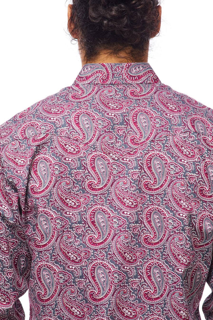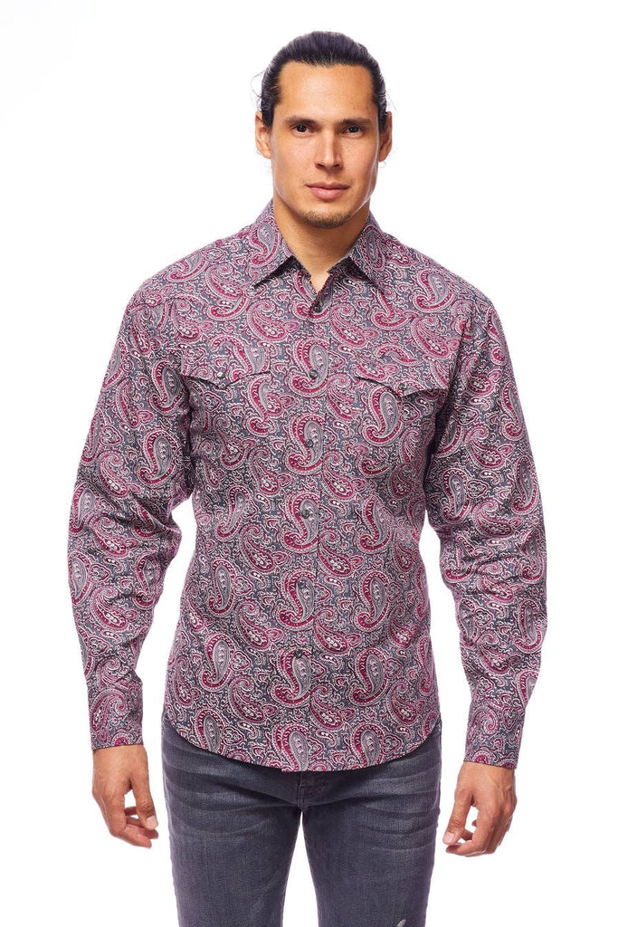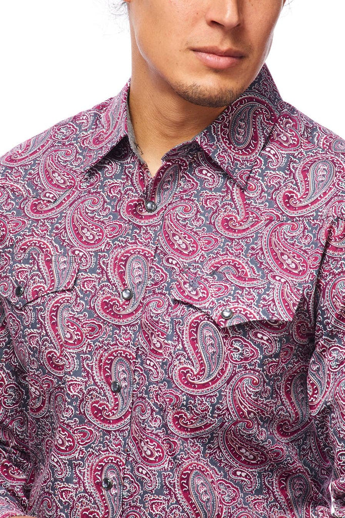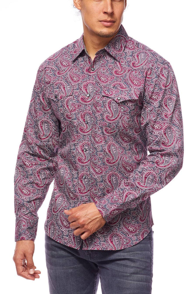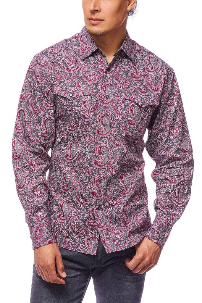 Description: Men's western long sleeve, 100% cotton printed shirts with snap buttons.
