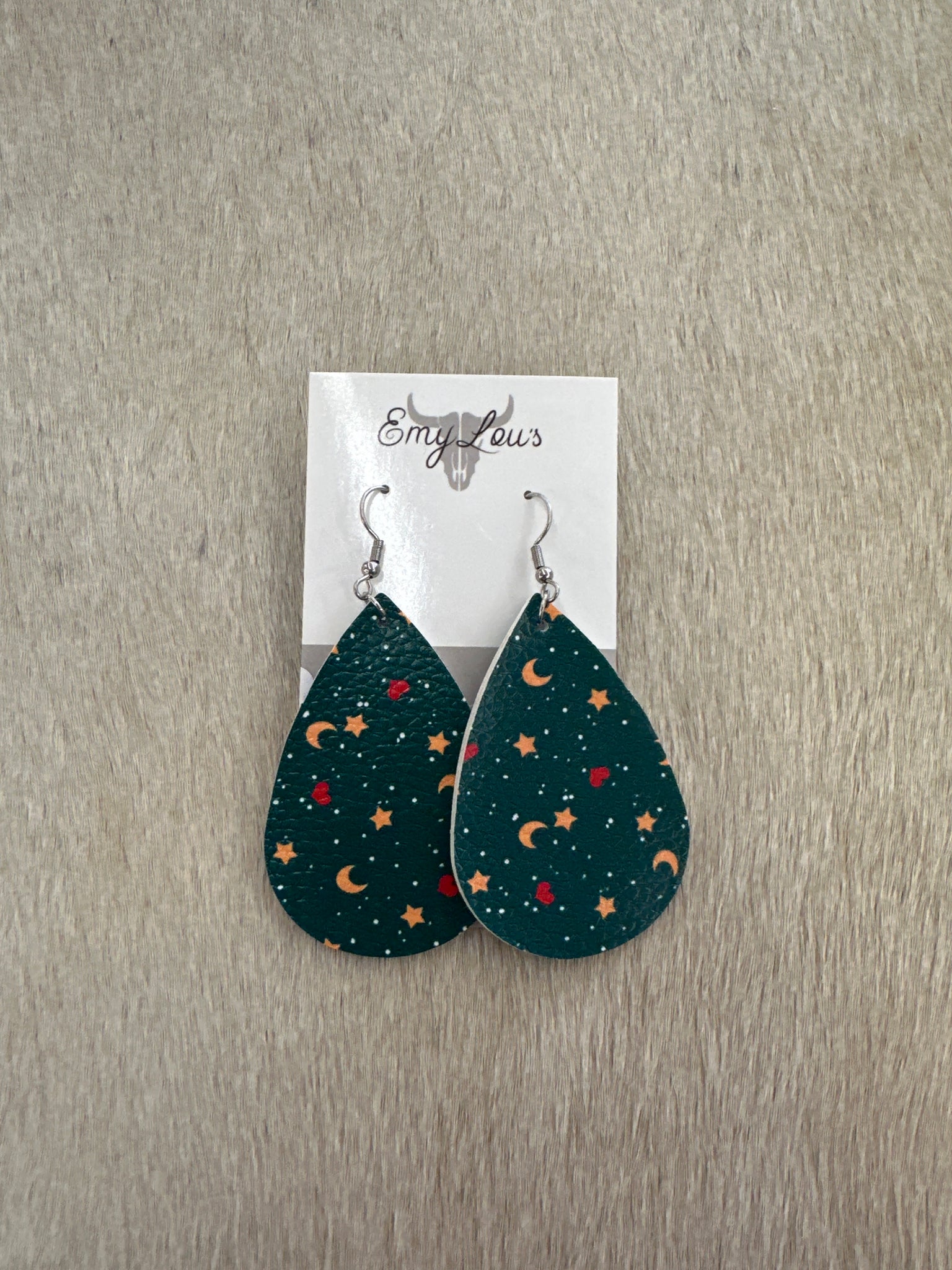 Moon and Star Leather Earrings