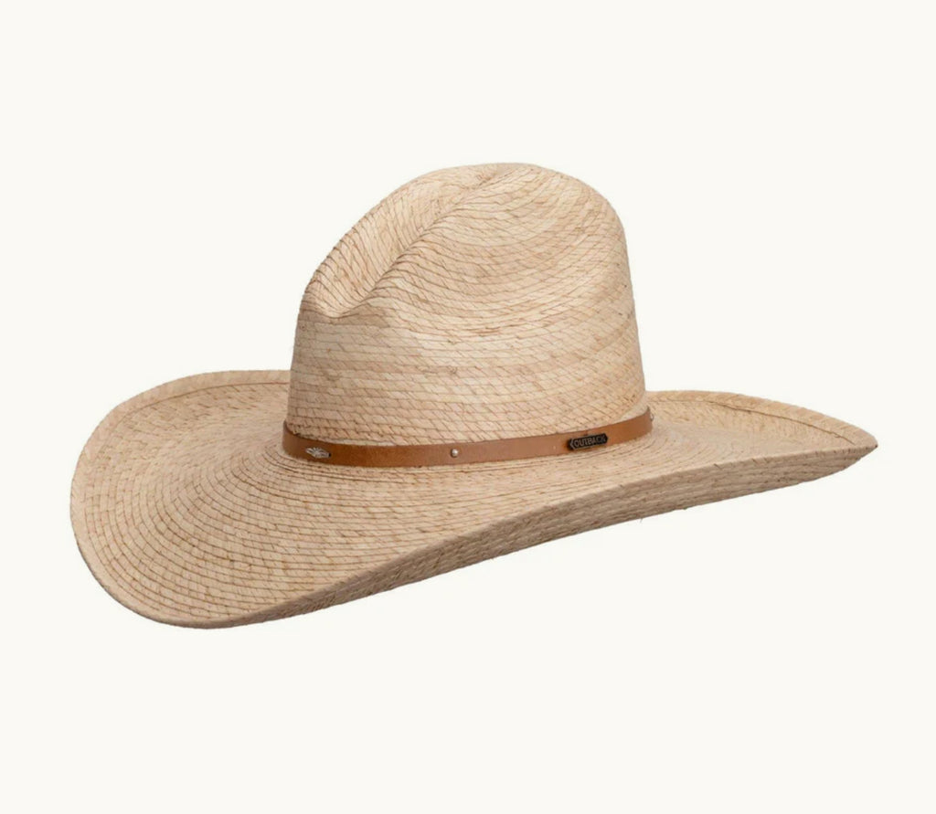 Straw | UPF 40 Rating | Wire Brim | Crown: 5 Inches | Brim: 4 Inches | Eyelets | Leather Sweatband | Made in Mexico